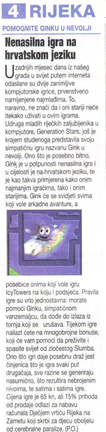 2005 is the year when GS Team made their first steps in shareware industry so they made an exception in their making of games and made a "platformer kind of game" game called "Gink in Trouble". This and all games that are yet to be developed have a difficult task, to create a brand Generation Stars.